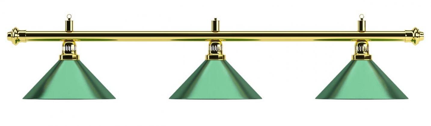 Лампа на три плафона "Evergreen" (золотистая штанга, зеленый плафон D35см)