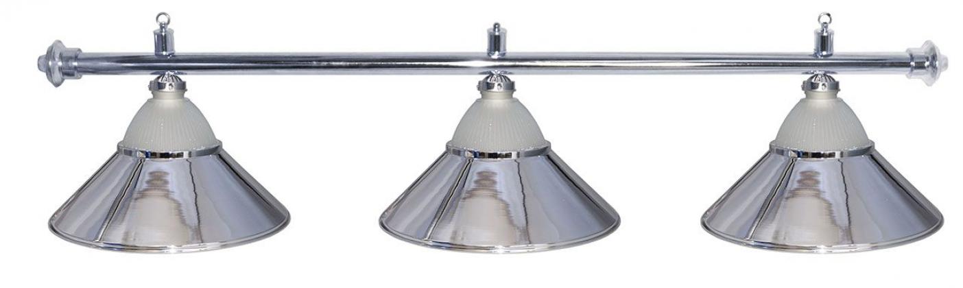 Классический дизайн лампы позволяет ей вписываться абсолютно в любой интерьер, а вставки из стекла рассеивают свет над бильярдным столом, создавая особую атмосферу. Комплектуется цепочками и чашками для крепления к потолку. Предназначена для равномерного освещения игрового поля 6-8 футовых столов.
