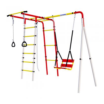 Комплектация: рукоход, турник, качели цепные, канат, кольца гимнастические