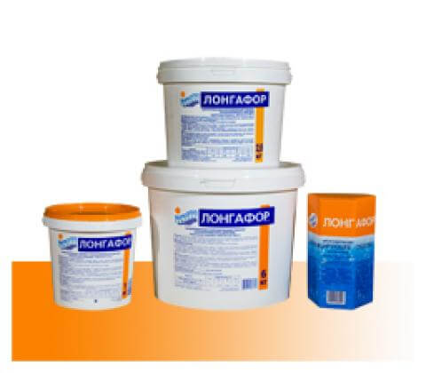 Средство "Лонгафор" специально предназначено для долгосрочного обеззараживания воды; разрушает органические вещества, вызывающие мутность воды; противодействует росту микроспор зелёного планктона в открытых бассейнах; имеет осветляющий эффект.