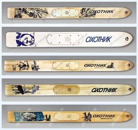 Лыжи «Охотник» применяются практически на всей территории России, кроме некоторых южных регионов. Они изготовлены из древесины лиственных пород (береза, осина). Склейка лыж «Охотник» произведена морозо- и влагоустойчивым клеем шведского производства, что придает лыжам особую прочность. Покрытие лицевой стороны данных охотничьих лыж выполнено финским морозоустойчивым лаком с повышенным глянцем.