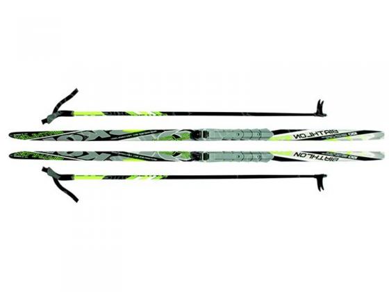 Лыжный комплект включает в себя лыжи с установленными на них креплениями. Конструкция лыж: внешняя оболочка из ABS пластика, облегченный клин из переклеенной древесины, шлифованная синтетическая скользящая поверхность. Скользящая поверхность без насечки. Лыжи зарекомендовали себя хорошими ходовыми качествами. Крепления стандарт 75 мм. Крепления NN 75 представляют собой металлические крепления с дужкой. Ботинок удерживается на трех штырьках и прижимается дужкой за рант. Особенностью является разделение под правый и левый ботинок. Они недороги и просты в применении. Подходят к любому размеру ботинок этого стандарта.