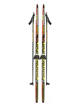 Лыжный комплект включает в себя лыжи с установленными на них креплениями. Конструкция лыж: внешняя оболочка из ABS пластика, облегченный клин из переклеенной древесины, шлифованная синтетическая скользящая поверхность. Скользящая поверхность без насечки. Лыжи зарекомендовали себя хорошими ходовыми качествами. Крепления стандарт 75 мм. Крепления NN 75 представляют собой металлические крепления с дужкой. Ботинок удерживается на трех штырьках и прижимается дужкой за рант. Особенностью является разделение под правый и левый ботинок. Они недороги и просты в применении. Подходят к любому размеру ботинок этого стандарта.