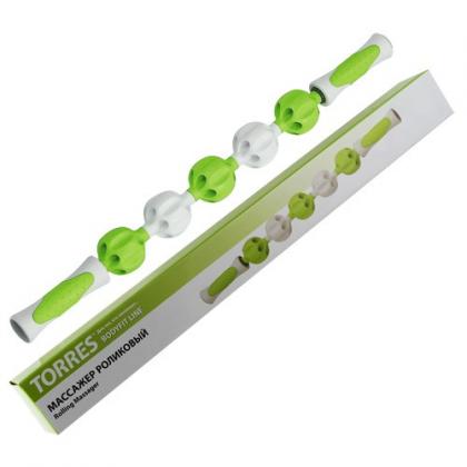 Массажер роликовый «TORRES», арт.BL1008, в форме скалки, 5 массажных элементов, зелено-белый