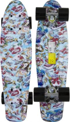 дека - высокопрочный пластик 22,5*6";полиуретановые колеса 60*45мм,жесткость - 78А;полиуретановый амортизатор,жесткость - 85А;усиленный алюминиевый трак 3,25";подшипник - ABEC-7;