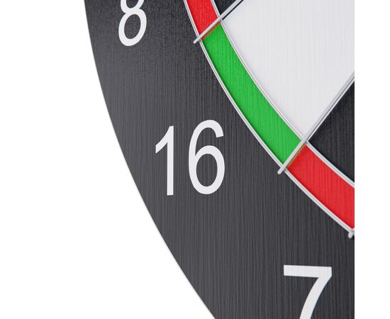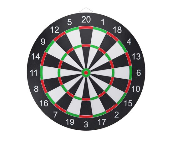 Комплект мишени включает в себя 6 дротиков с металлическими наконечниками и имеет 2 разные мишени с двух сторон. Кроме того, в комплекте идут флайты с американским и английским флагами, что делает эту мишень еще более интересной. Диаметр мишени составляет 43 см.