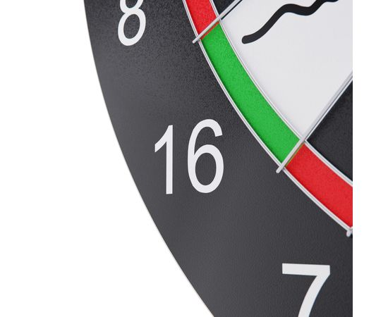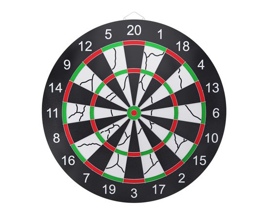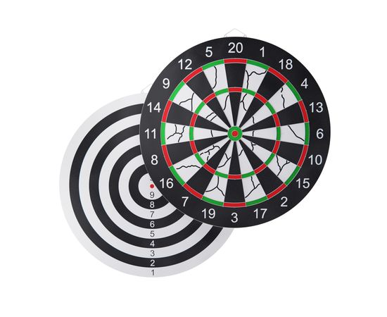В комплект входят 6 дротиков с металлическими наконечниками, каждый весом 6 грамм, что облегчает броски. Мишень имеет два различных поля с двух сторон, благодаря чему можно разнообразить игру. Диаметр мишени дартса составляет 40,3 сантиметра.