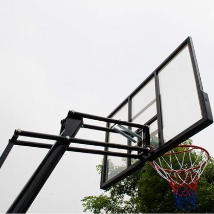 Щит изготовлен из поликарбоната толщиной 4 мм и размером 152 х 90 см (60 дюймов), что обеспечивает отличную отдачу мяча. Регулировка высоты осуществляется с помощью телескопической ручки в диапазоне от 245 до 305 см, что позволяет легко адаптировать его под игроков любого роста. В нижней части щита есть защитное покрытие Poly Pade.