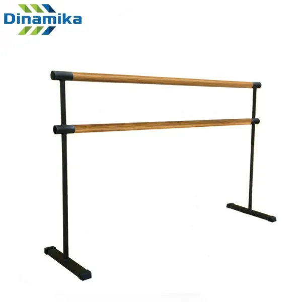 Хореографический станок мобильный двухрядный представляет собой сборную конструкцию, состоящую из двух двухрядных стоек-кронштейнов с держателями поручней и опор изготовленных из стальной трубы, и двух поручней из дуба (жерди). Сварные швы хореографических кронштейнов тщательно обработаны и зачищены. Поверхность кронштейнов окрашена порошковым напылением в электростатическом поле. В комплекте с кронштейнами идут саморезы для крепления жерди. Поставляется в разобранном виде.
