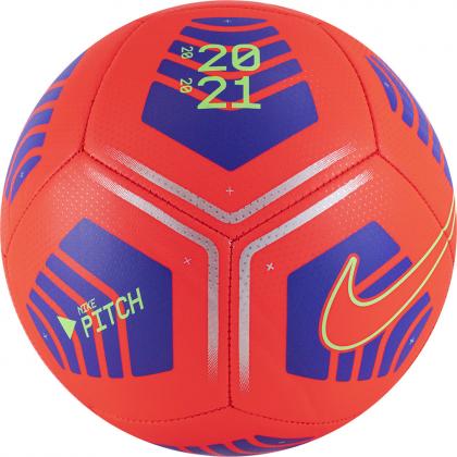 Любительский мяч NIKE Pitch. Покрышка мяча изготовлена из матовой синтетической кожи (термополиуретан) и одного подкладочного слоя синтетической ткани. Размер 4, 12 панелей, машинная сшивка, бутиловая камера, армированная синтетической нитью, бутиловый ниппель.