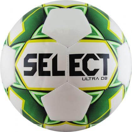 Бюджетный футбольный мяч SELECT ULTRA DB выполнен из глянцевой синтетической кожи (термополиуретан) со слоем пены ТПЕ, три подкладочных слоя из синтетической ткани, латексная камера. Мяч изготовлен по новой технологии DB (Dual Bonding) - сочетание термо-склеивания панелей и машинной сшивки. Перед сшивкой на края панелей наносится специальный клей, который активируется при помещении, уже сшитого мяча, в специальную термо-форму. Эта технология позволяет сделать швы более сглаженными, прочными и влагонепроницаемыми. 32 панели. Размер 5.