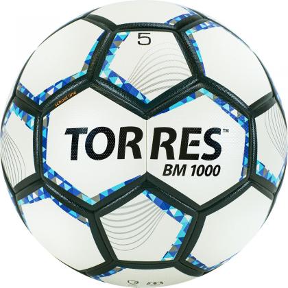 Мяч футб. «TORRES BM 1000″арт.F320625, р.5, 32 панел., мягкий PU, термосшивка, бел-серебр-син.