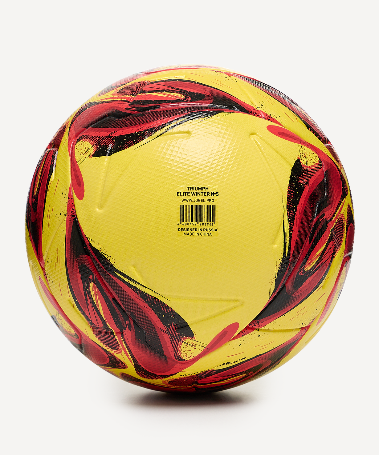 Triumph Elite Winter №5 - профессиональный футбольный мяч, который разработан для игр в зимнее время и при низкой видимости. Благодаря выразительному жёлтому цвету мяч не сливается с заснеженными участками поля и быстро привлекает к себе внимание. В данной модели были учтены все пожелания футболистов и также применен наш многолетний опыт в создании мячей. Выполнен по технологии термосклеивания THB Technology, благодаря чему обладает идеально круглой формой, герметичен и не пропускает влагу внутрь, а давление в мяче распределяется равномерно. Текстура поверхности материла разработана по технологии Grip Skin - для максимального контроля в любую погоду. Сочетает в себе оригинальные технические решения в виде 8 панельной конструкции мяча и красочный дизайн. Снаряд экологичен, в подкладке мяча используется переработанный материал, который получается из 4 пластиковых полулитровых бутылок.