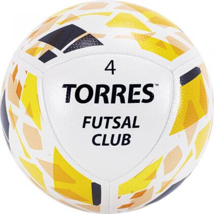 Мяч футзал. «TORRES Futsal Club», арт.FS32084, р.4, 10 пан. PU, 4 под. сл, гибрид. сш. бело-зол-чер
