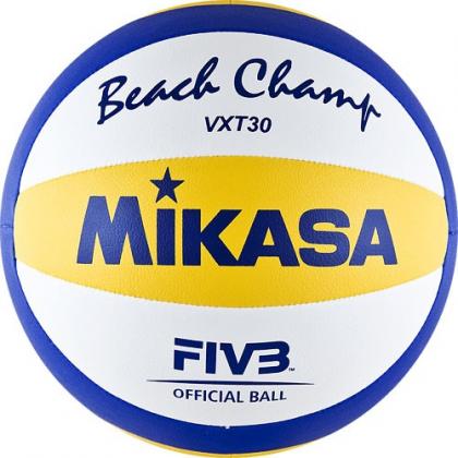 Мяч вол. пляжн. «MIKASA VXT30»,мягкая синт.кожа (ПУ),маш.сш.,10 пан, бут.кам,нейлон.к,бел-син-желт
