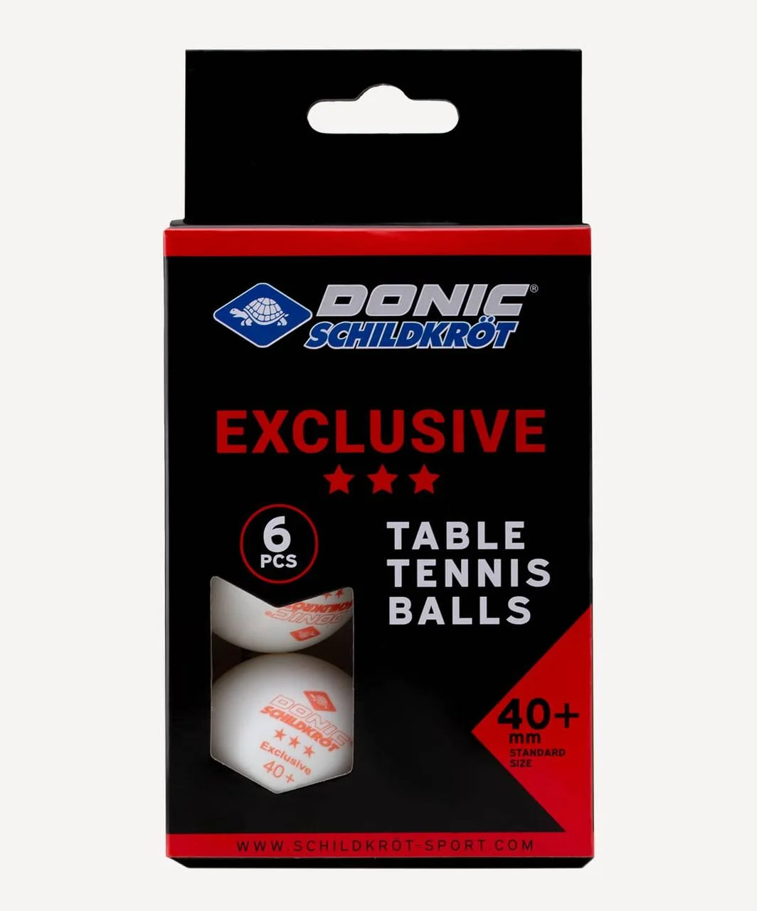 Мячики для н/тенниса DONIC EXCLUSIVE 3* 40+, 6 штук, белый