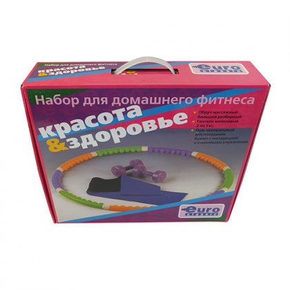 Комплектность: обруч массажный разборный, гантели виниловые 2шт. по 1кг., пояс неопреновый для похудения, буклет с вариантами упражнений и игр для детей