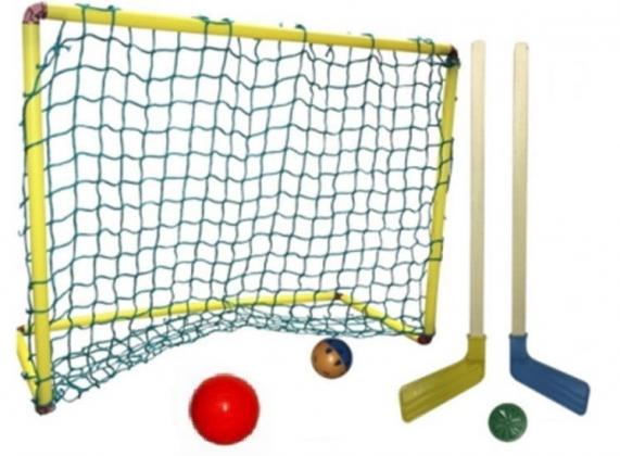 Набор детский хоккейныйВ набор входят - 2 клюшки, 2 ворот с сеткой, шайба, мячикГабариты ворот 80х60смУпакован в коробку