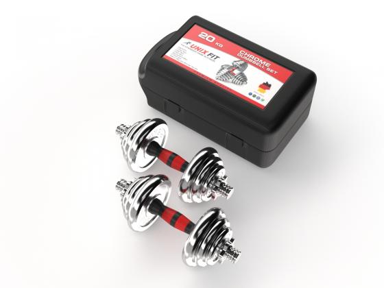 Набор состоит из двух гантелей общим весом 20 кг. Удобная разборная конструкция позволяет регулировать вес гантелей в процессе занятий, а эргономичная рукоятка сделает тренировку комфортной.В комплект входит компактный кейс для хранения и транспортировки гантелей.