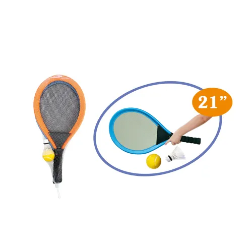 С помощью этого набора Вы поможете Вашим детям приобрести первоначальные навыки игры в большой теннис и просто весело провести время. Ракетки изготовлены из пластика, что избавит Вас от необходимости перетягивать износившиеся струны и снабжены оплеткой для лучшего хвата. Этот комплект Вы можете взять с собой в парк, на пляж, или использовать во время загородного отдыха.