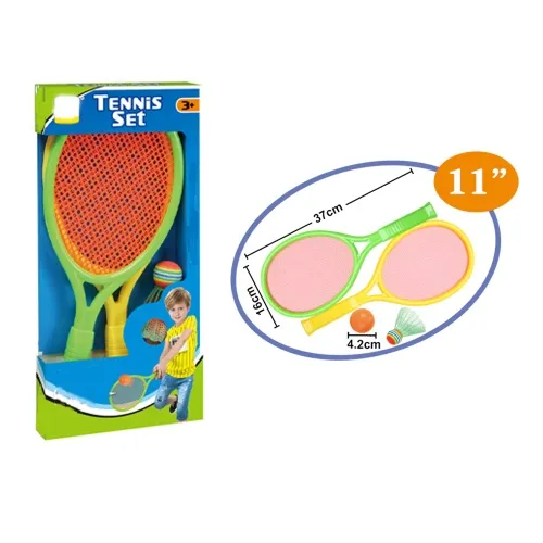 С помощью этого набора Вы поможете Вашим детям приобрести первоначальные навыки игры в большой теннис и просто весело провести время. Ракетки изготовлены из пластика, что избавит Вас от необходимости перетягивать износившиеся струны и снабжены оплеткой для лучшего хвата. Этот комплект Вы можете взять с собой в парк, на пляж, или использовать во время загородного отдыха.