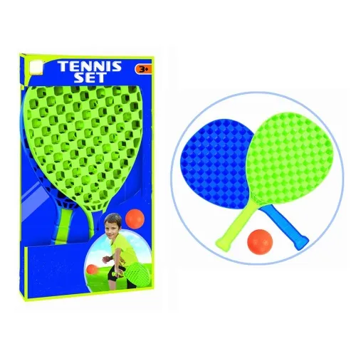 С помощью этого набора Вы поможете Вашим детям приобрести первоначальные навыки игры в большой теннис и просто весело провести время. Ракетки изготовлены из пластика, что избавит Вас от необходимости перетягивать износившиеся струны и снабжены оплеткой для лучшего хвата. Этот комплект Вы можете взять с собой в парк, на пляж, или использовать во время загородного отдыха.