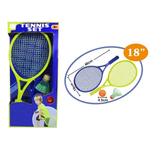 С помощью этого набора Вы поможете Вашим детям приобрести первоначальные навыки игры в большой теннис и просто весело провести время. Ракетки изготовлены из пластика, что избавит Вас от необходимости перетягивать износившиеся струны и снабжены оплеткой для лучшего хвата. Этот комплект Вы можете взять с собой в парк, на пляж, или использовать во время загородного отдыха.