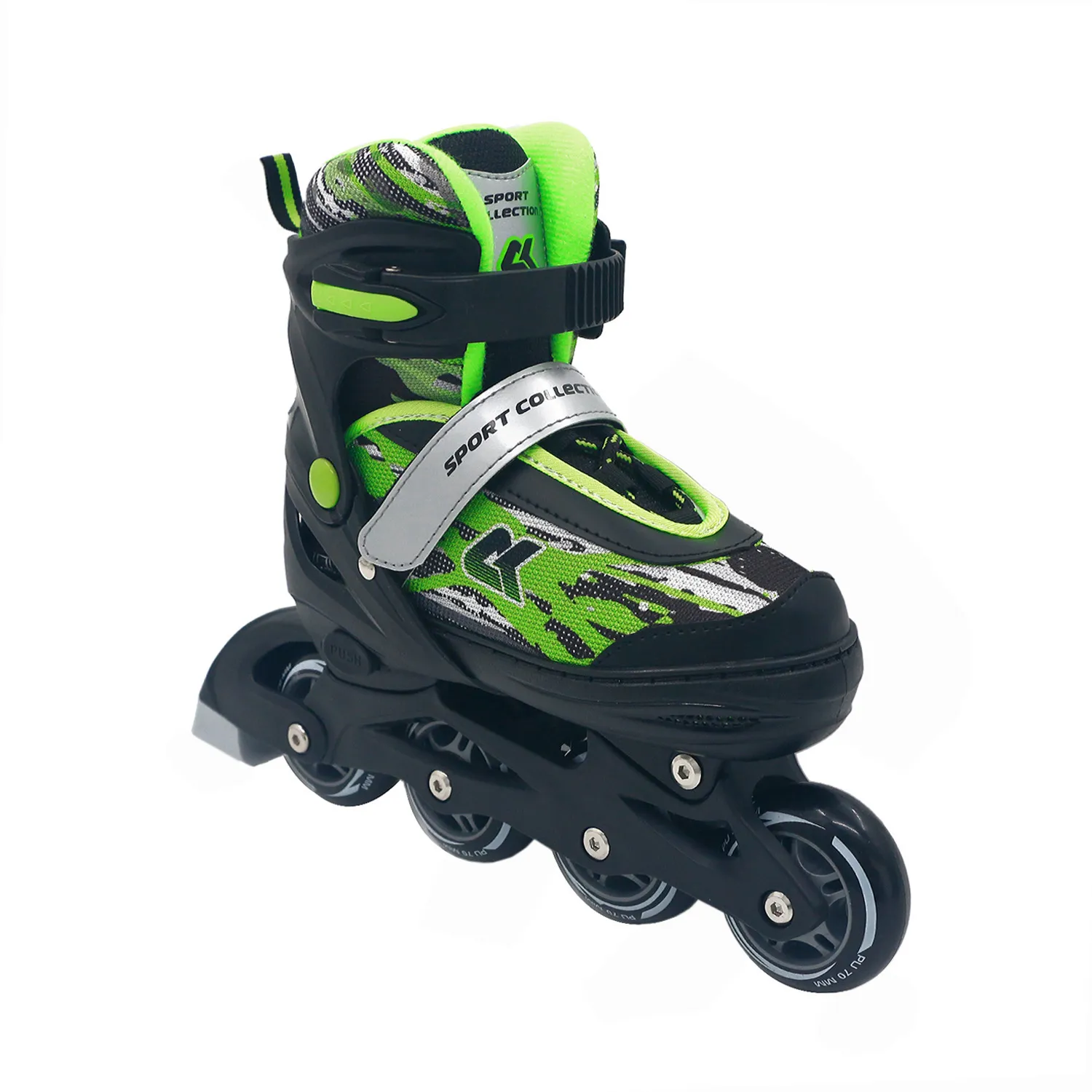 В комплект входит: Раздвижные ледовые коньки,сменное колеса, шлем (50-56), защита (S/M).