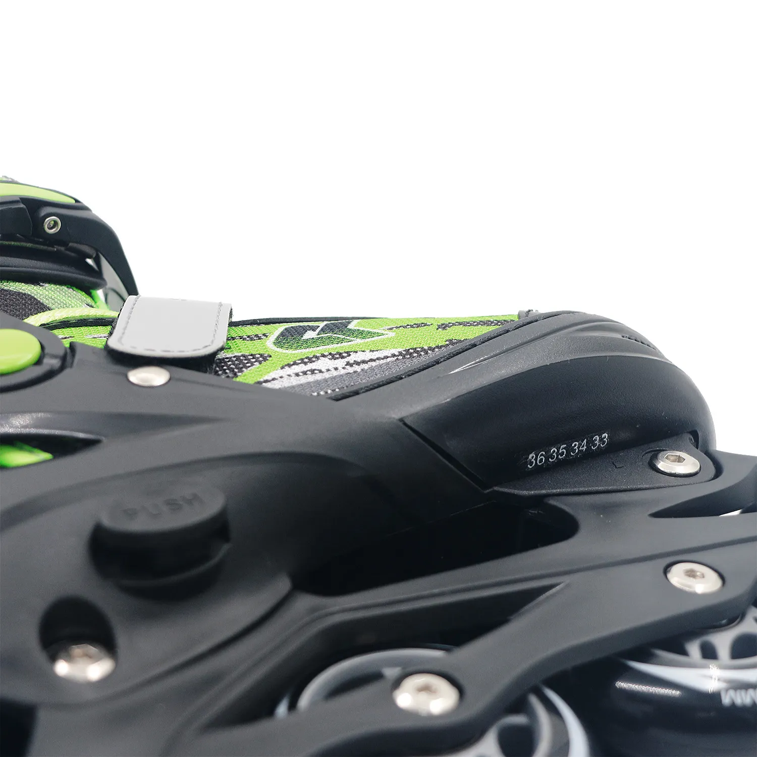 Наши коньки отлично подойдут для детей, но также и не оставят равнодушными подростков и взрослых. Надежная конструкция пятки сделает катание безопасным, застежка - клипса в сочетании со шнурками будут комфортно фиксировать ногу в ботинке, быстрые подшипники придадут динамичности при езде, а сменное лезвие без особых усилий превратит ролики в коньки.