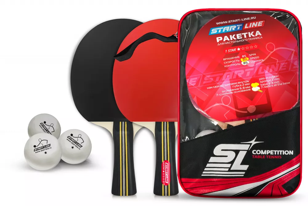 Набор для настольного тенниса Startline COMPETITION включает 2 ракетки и 3 мяча. Start Line заботится о сохранении продукции и удобстве игроков, поэтому набор упакован в компактную сумку с ручкой и замком-молнией. Набор удобно брать собой, а целостность инвентаря сохранится. Ракетки дополнительно защищены прозрачной плёнкой.