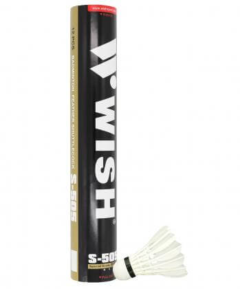 Набор воланов для бадминтона Wish S-505 состоит из 12-ти перьевых снарядов, упакованных в тубу. Юбка волана для бадминтона изготовлена из гусиного пера, голова волана - из ЭВА. Они предназначены для тренировок и обучения, имеют среднюю точность полета. Скорость перьевого волана для бадминтона Wish S-505 подходит для игры при температуре 12-23 ⁰С и в общей классификации относится к категории «средняя».