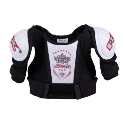 Нагрудник хоккейный обеспечивает защиту грудной клетки и всей спины игрока, особенно позвоночника. Наличие накладок для плеч повышает комфорт при игре. Материалы: трикотажное полотно полиэстер – 100 % , пенополиэтилен (ППЭ), пластик для усиления защиты в области ключиц, груди, спины и бицепсов. Застежка «липучка» для фиксации нагрудника с регулировкой размеров груди и бицепсов.Размер: 32-34, 34-36.