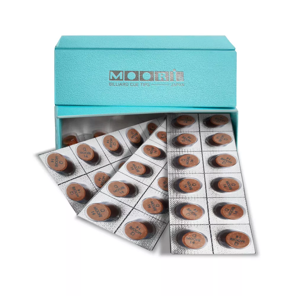 Несмотря на то, что наклейки на кии – это расходный материал, Moori относятся к наиболее долговечным и износостойким. Слои кожи между собой соединены не просто клеем, а методом ламинированного прессования. Известно, что первый вариант, просто клей, традиционно считается менее надежным, так как от ударов он может выбиваться между неплотных слоев.