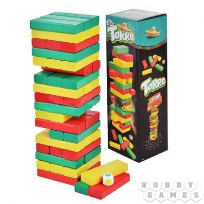 Мы усложнили Вашу задачу, покрасив в разные цвета брусочки и включили в комплект кубик с разноцветными гранями. Установив очередность, игроки по очереди бросают кубик, чтобы определить цвет бруска, который он должен переместить. При этом игрок самостоятельно выбирает для атаки любой уровень и вытаскивает одной рукой один из брусков. Этот брусок, оказавшийся в руках игрока, укладывается на новый, верхний этаж сооружения. Везение и ловкость помогут выстроить игрокам башню вдвое больше начальной высоты. Виновник разрушения необыкновенного цветного сооружения считается проигравшим!