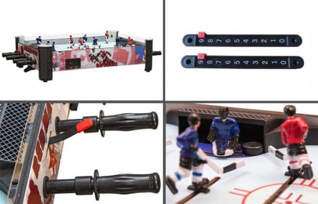 Игровое поле выполнено из ударопрочного материала (МДФ), стойкого к царапинам. Пластиковые ручки для управления игроками надежно крепятся к штанге и удобны в игре как для детей, так и для взрослых. Почувствуйте себя участником легендарного матча советских времен! Тренируйте технику ударов и волю к победе. Стоит отметить, что настольный хоккей благоприятно влияет на развитие мелкой моторики у детей, поэтому помимо положительных эмоций данная игра несет практическую пользу. Берите настольный хоккей «Red Machine» с собой на дачу или в гости. Его вес и размер с легкостью позволяют поместить его в любой легковой автомобиль. Тренируйте технику, развивайте моторику и получайте массу удовольствия от захватывающих хоккейных матчей в кругу семьи и друзей! «Red Machine» - это еще и отличный и оригинальный подарок.