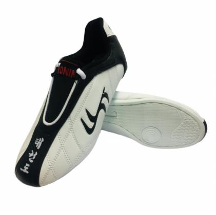 Описание: Обувь для таэквандо, черно-белый дизайн, состав японский PU, на шнуровке и резинке, рифленая подошва TPR, класс Мастер.