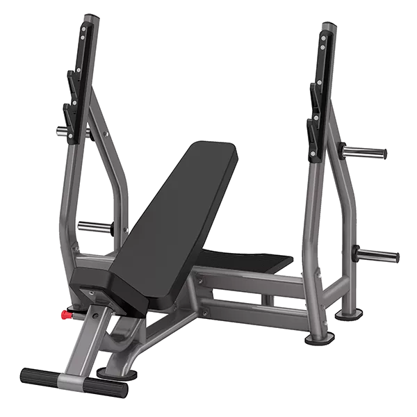 Скамья снабжена двумя уровнями высоты штанги, органайзерами для дисков и площадкой для страховки спортсмена.