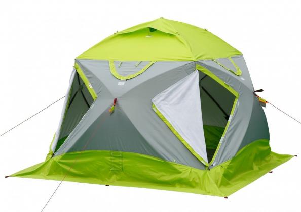 Лотос КубоЗонт 4 Компакт Термо – полуавтоматическая зимняя палатка кубозонт с минимальными транспортными размерами. Высокое, теплое укрытие, с монолитной устойчивостью, надежной защитой от непогоды и богатым оснащением предлагает Вам почувствовать полноценный домашний комфорт на природе! Большая трехслойная палатка кубозонт является инновационной конструкцией, открывающей новое поколение быстро-сборных палаточных укрытий. В палатке «КубоЗонт 4» совмещены технические преимущества конструкций «Куб» (квадратная форма по периметру дна и практически вертикальные ветроустойчивые стенки) и «Зонт» (куполообразная фиксируемая крыша), позволяющие обеспечить новому большому укрытию непревзойденные по своей совокупности показатели ТТХ (тактико-технических характеристик), которые определяют ее высокую стоимость.