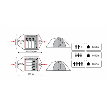 Размеры палатки, см: 220 x 350
