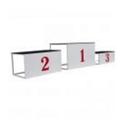 Пьедестал изготовлен из металлического каркаса, с платформой из фанеры и пластиковой облицовкой в передней части.Стандартный цвет пластиковой облицовки белый. Цифры выполнены из самоклеящейся пленки.Верх пьедестала выполнен из влагостойкой фанеры с нанесением лакокрасочного покрытия толщиной 18мм. Стандартные цвета на выбор: коричневый, черный, белый.Пьедестал для награждения состоит из трех отдельных тумб.Для удобства хранения и транспортировки предусмотрена возможность складывания друг в друга.Вместимость тумб от 1 до 3-х человек.Стандартные размеры:1 место.............900х600х540 мм2 место.............800х500х410 мм3 место.............700х400х280 мм