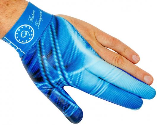Перчатка на левую руку из коллекции, посвященной аргентинскому чемпиону-бильярдисту Густаво Торрегиани. Все модели этой линейки выполнены в голубых тонах флага Аргентины. на манжете — автограф спортсмена.