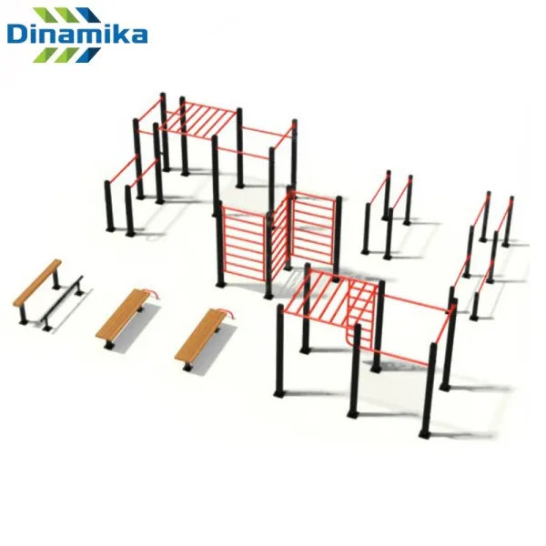 Площадка для воркаута в спорт-комплекс представляет собой комплект сборно-разборных конструкций, состоящий из турников, стенок шведских, скамеек, пресс-блоков, брусьев, площадок двор и парк. Сварные швы изделий данного комплекта тщательно обработаны и зачищены. Поверхность изделий покрыта порошковой краской. В комплекте с площадкой имеются все детали для сборки (комплект под бетонирование). Изделие может быть исполнено под установку в зале или на покрытии без использования бетонирования.