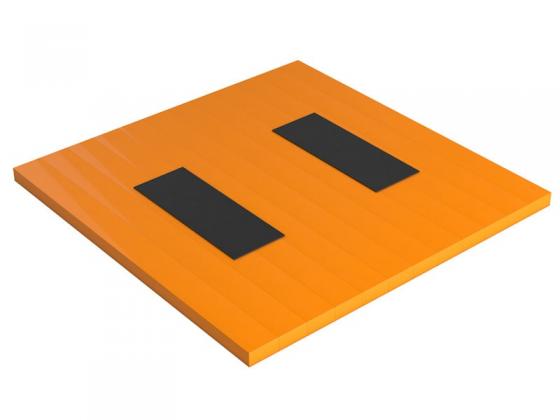 Квадратная сборная платформа, состоящая из 12-ти деревянных секций одинаковых по размеру, но разных по конструкции. Они крепятся друг к другу и стянуты специальными металлическими шпильками. В 6-ти центральных секций врезаны 2 амортизационные дорожки. Размеры резиновых амортизаторов согласовываются с заказчиком и могут быть различными.