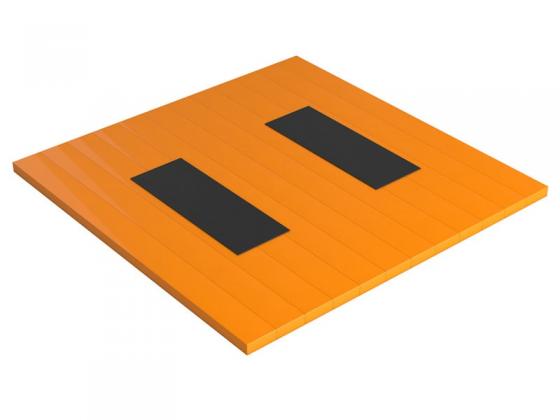 Квадратная сборная платформа, состоящая из 12-ти деревянных секций одинаковых по размеру, но разных по конструкции. Они крепятся друг к другу и стянуты шпильками. В 6-ти центральных секциях врезаны 2 амортизационные дорожки. Размеры резиновых амортизаторов согласовываются с заказчиком и могут быть различными.