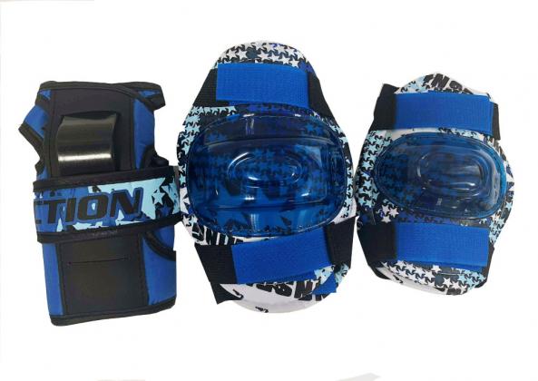 Комплектность: наколенник - 2шт., налокотник - 2шт., наладонник - 2шт.Размер: L, M, SМатериалы: основа - нейлон, защитные накладки - поливинилхлоридЦвет: черный, синийВид использования: любительское катание на роликовых конькахСтрана-производитель: КитайУпаковка: полиэтиленовый пакет с европодвесом