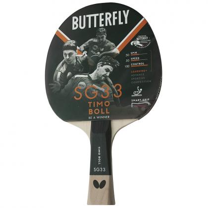 Новинка от Butterfly ракетка Timo Boll SG33 для амбициозных начинающих игроков с накладкой ADDOY 1,7 мм обладает превосходными показателями контроля при средних значениях скорости и вращения, помогая совершенствовать технику игры. Технология Innovative Smart Grip для легкого захвата и большего контакта с ладонью. Анатомическая ручка.