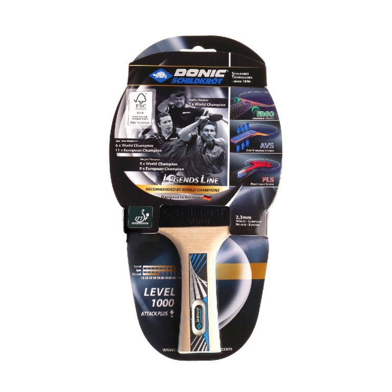 Ракетка DONIC "LEGENDS 1000" — это высокопроизводительный инструмент для игры в стиле Атака+, одобренный Международной федерацией настольного тенниса (ITTF). Оснащена накладкой Energy, изготовленной по технологии SR, которая обеспечивает высокий контроль и долговечность. Толщина губки 2,3 мм идеально сбалансирована для мощных ударов и быстрого реагирования. Конструкция ручки включает системы AVS, PLS и ERGO, что повышает точность, снижает вибрации, уменьшает вес и обеспечивает комфортный захват. Ручка из FSC-сертифицированной фанеры точно прилегает к руке, что помогает избегать усталости и повышает контроль. Размер ракетки — 25,9 х 14,6 х 1,3 см, вес — 0,21 кг, в упаковке — 0,29 кг. Эта модель отлично подойдет для профессиональных игр и тренировок, сочетая мощь, контроль и комфорт.