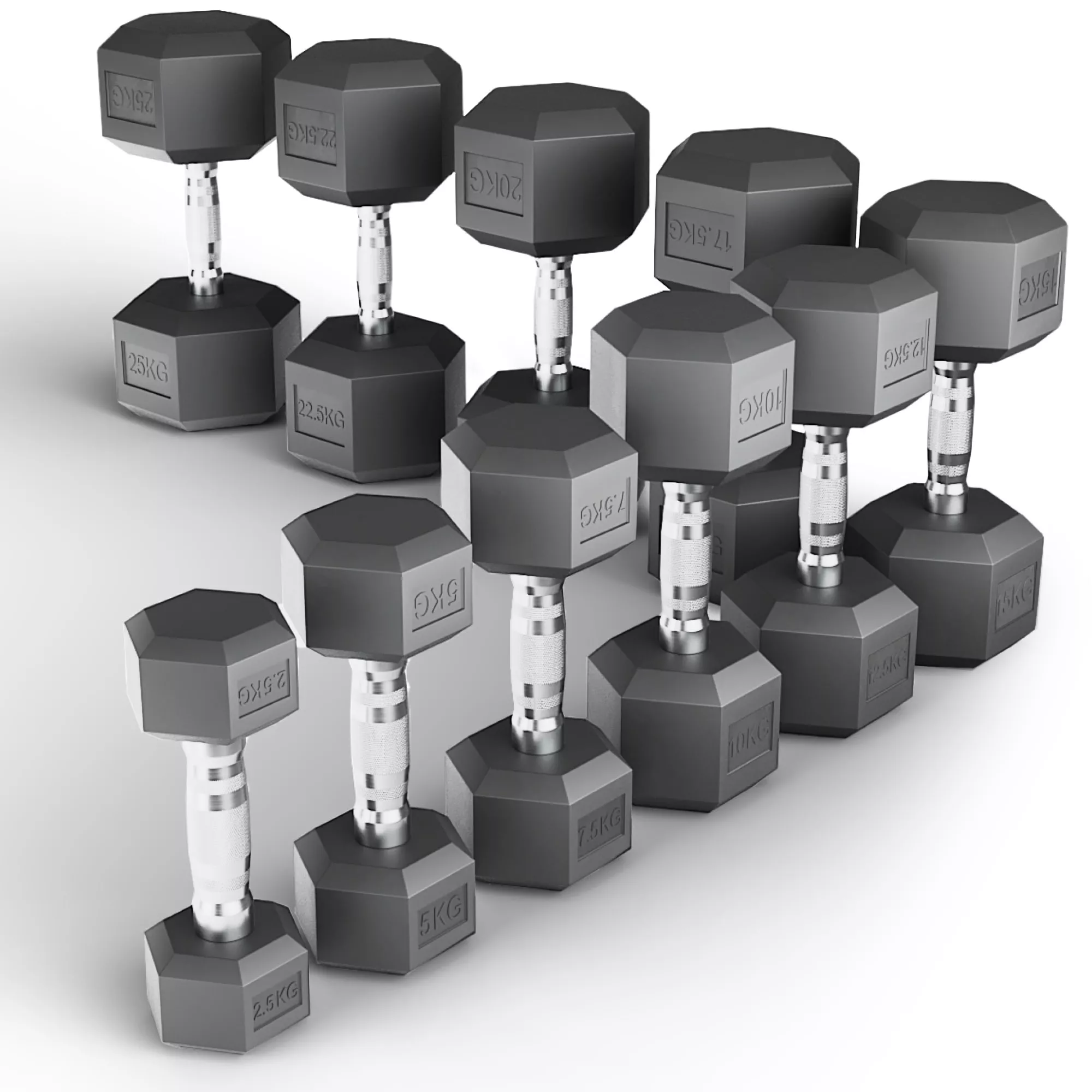 Ряд гантелей гексагональных UNIX Fit обрезиненные от 2,5 до 25 кг