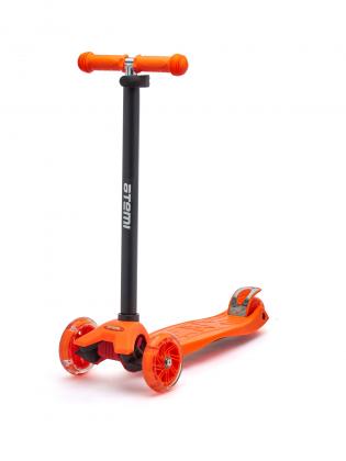 Самокат трехколесный с телескопической ручкой и светящимися полиуретановыми прозрачными колесами.Особенностью самоката является поворотно-наклонный механизм. Легкий в управлении, маневренный и устойчивый - он позволит ребёнку с радостью наслаждаться быстрой ездой. Изюминкой модели являются святящиеся колеса и регулируемый руль! Самокат оснащен ножным наступающим тормозом, который размещен над задними колесами. Имеет яркую расцветку и привлекательный дизайн.