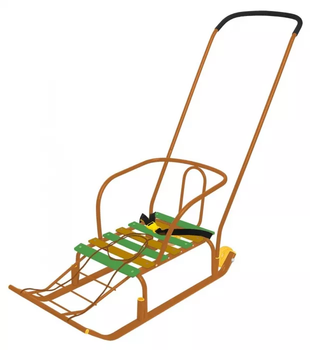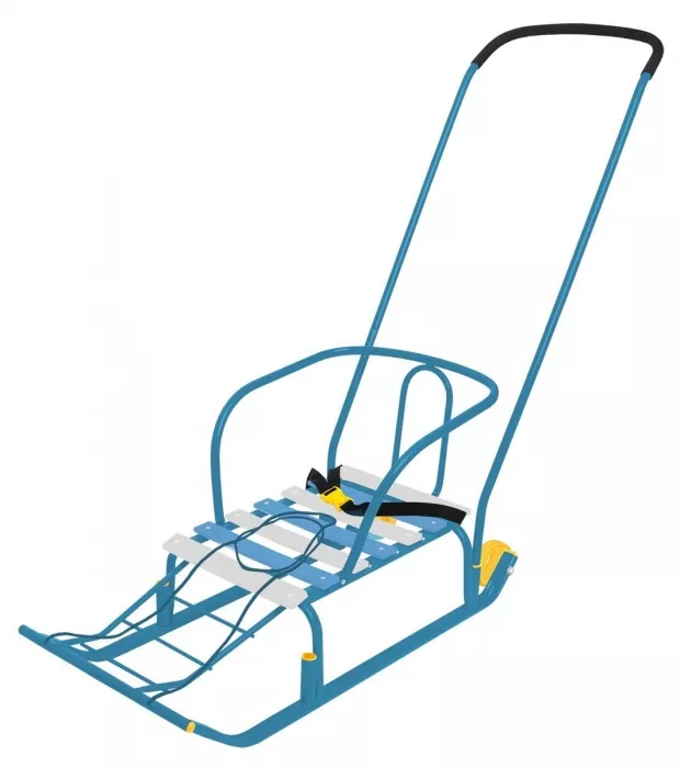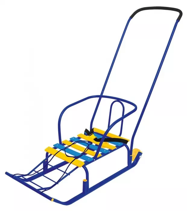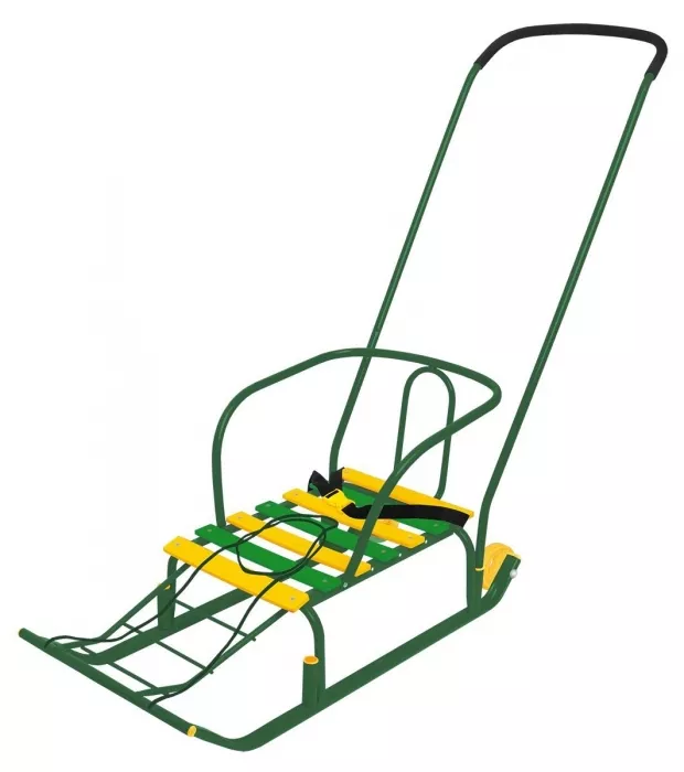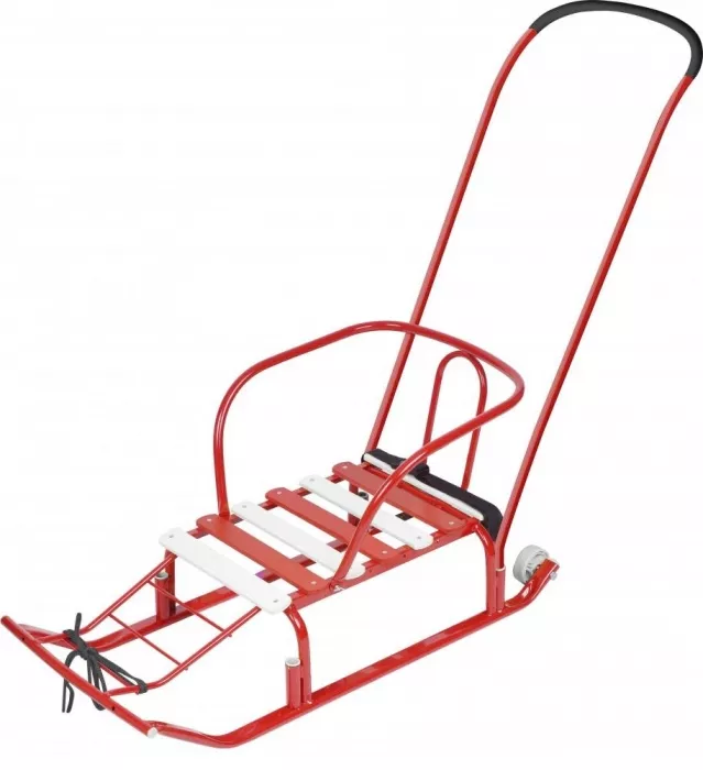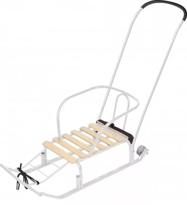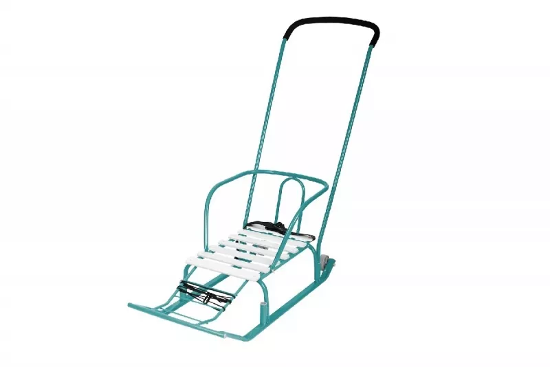 Всесезонность и практичность: Большие пластиковые полозья отлично скользят не только по снегу, но и по асфальту. А под складным сиденьем прячется вместительная сумка для игрушек, горячего чая или покупок.